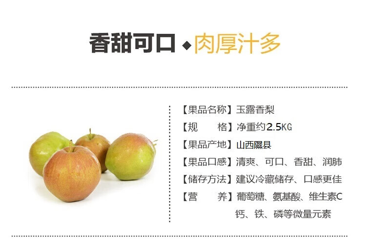 山西玉露香梨香雪梨净重约5斤7-10粒单果220g以上水果